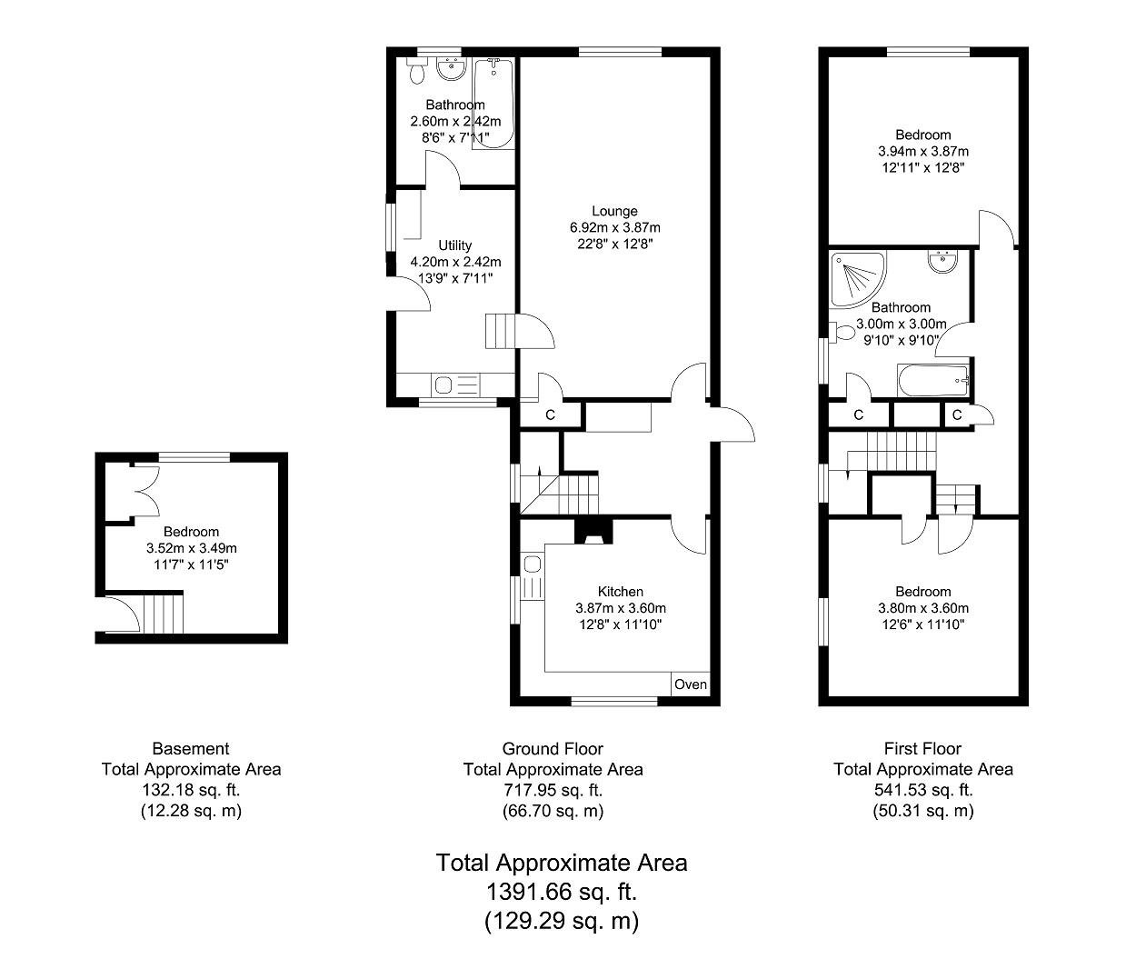 Steps down to the basement double bedroom, with a fitted wardrobe. Ground floor level, triple aspect sitting room with open fire. Cream shaker style kitchen with amtico style flooring, fully fitted with appliances.