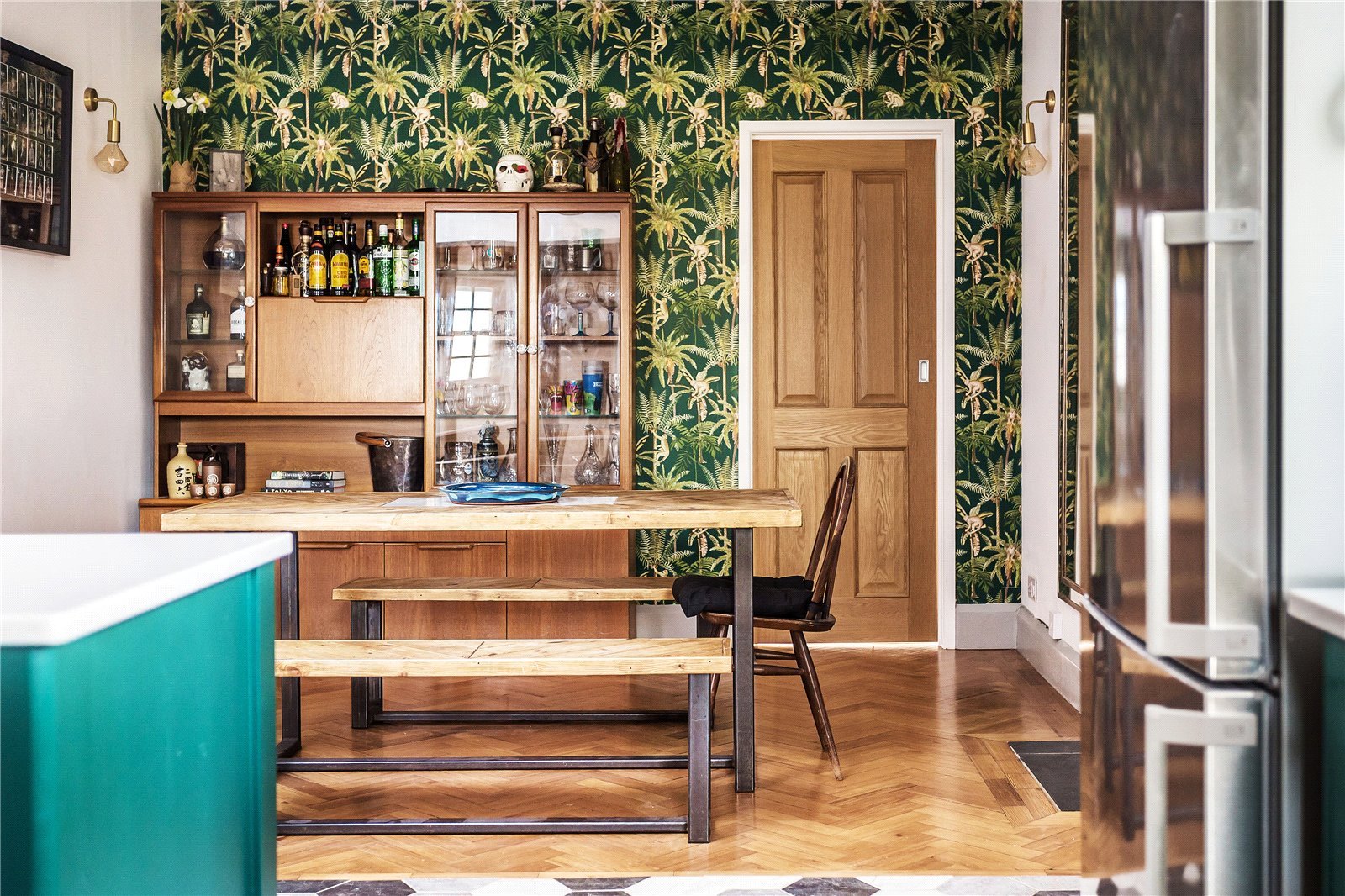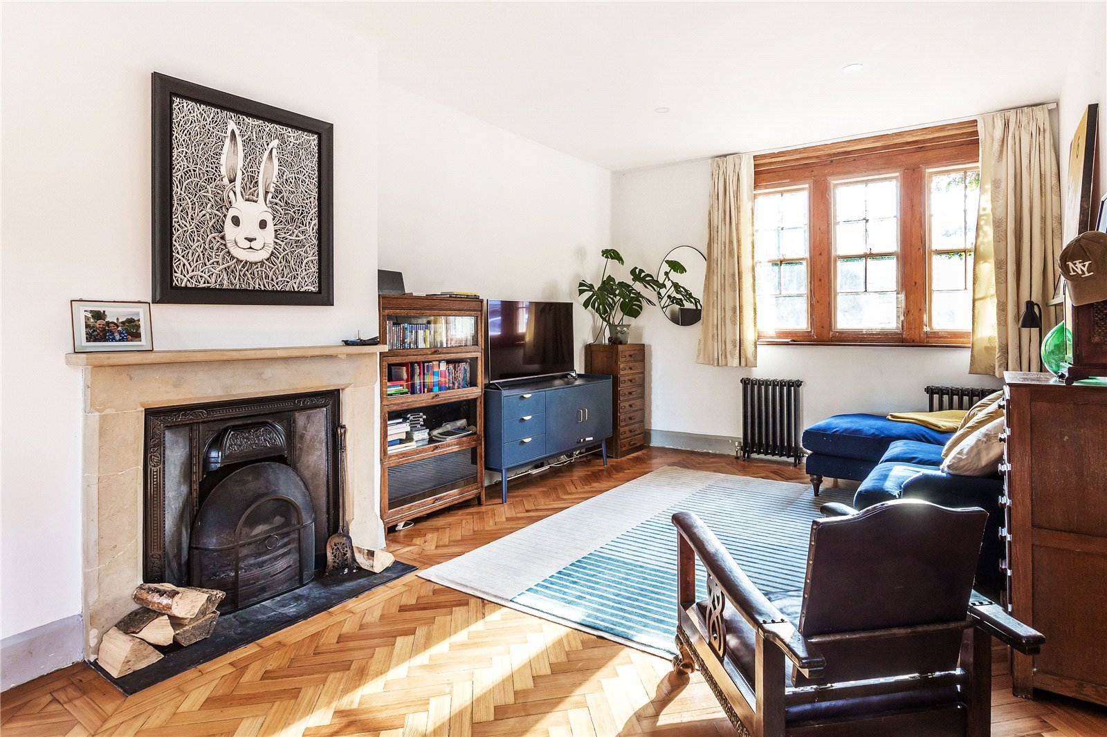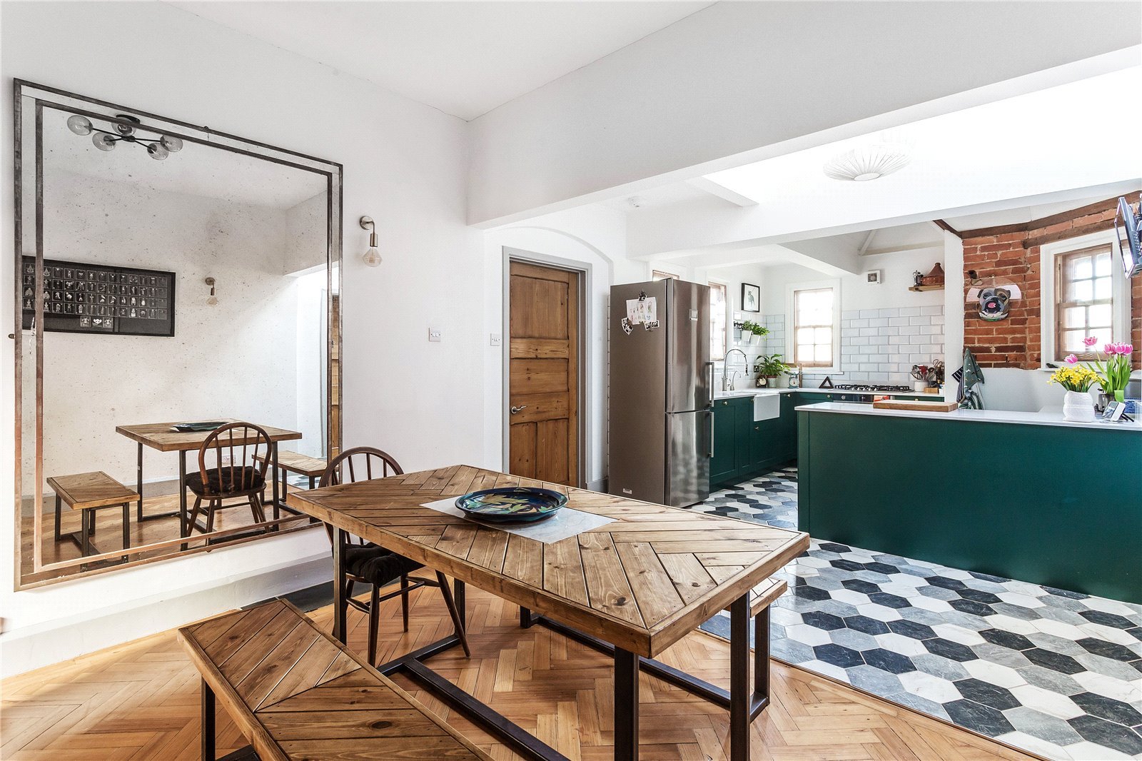 On the ground floor there is an entrance hall that leads into the truly impressive living room, with refurbished original parquet flooring, an open fireplace, large windows, and a French door that leads to an extensive balcony area. The bespoke handmade kitchen is open plan to the dining room and has been replaced by the current owners to offer a stylish and truly practical space for cooking and entertaining. There are two further bedrooms and a family bathroom on the ground floor which means that the space is incredibly flexible and can be used as required by the new owner.