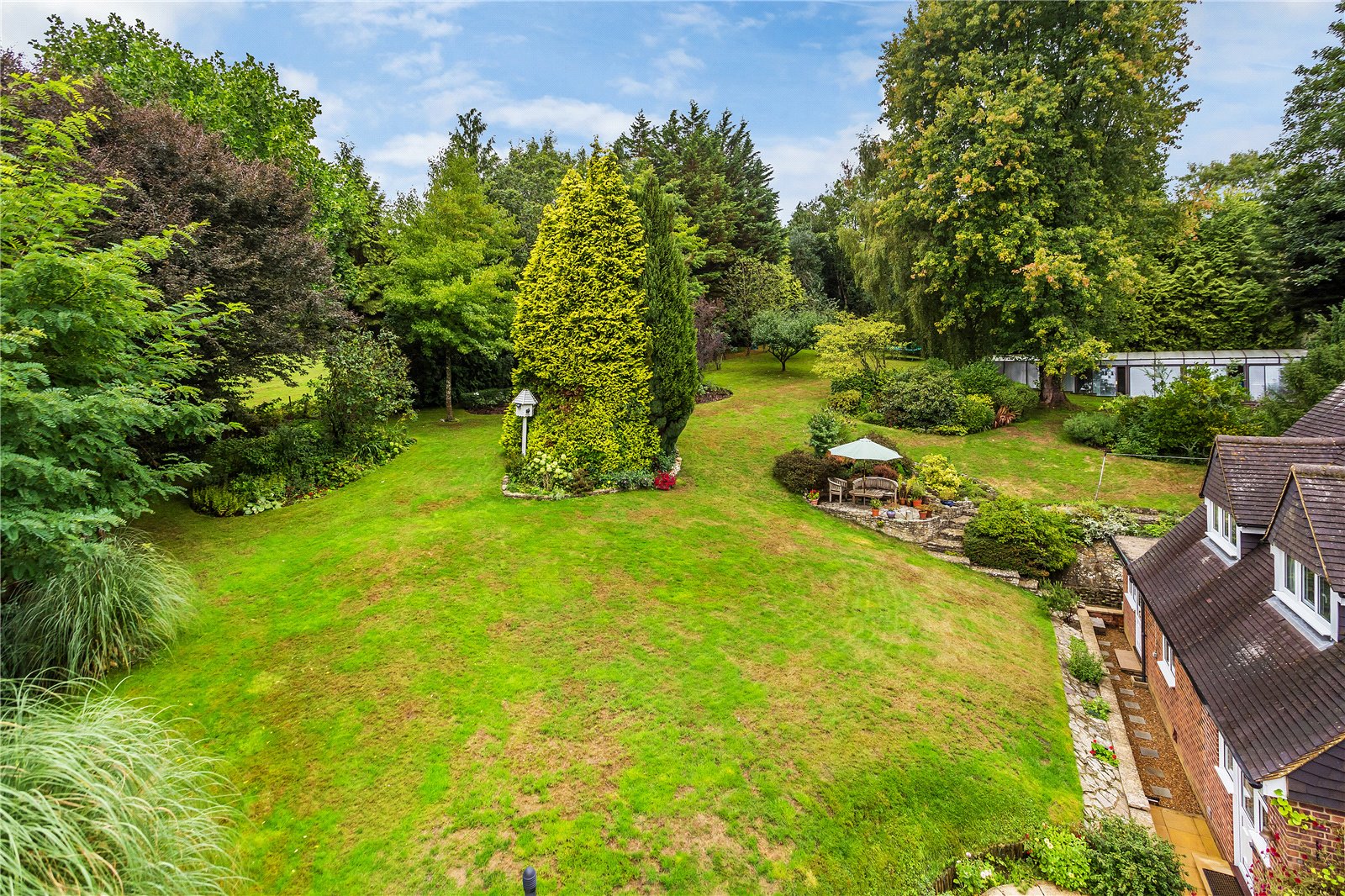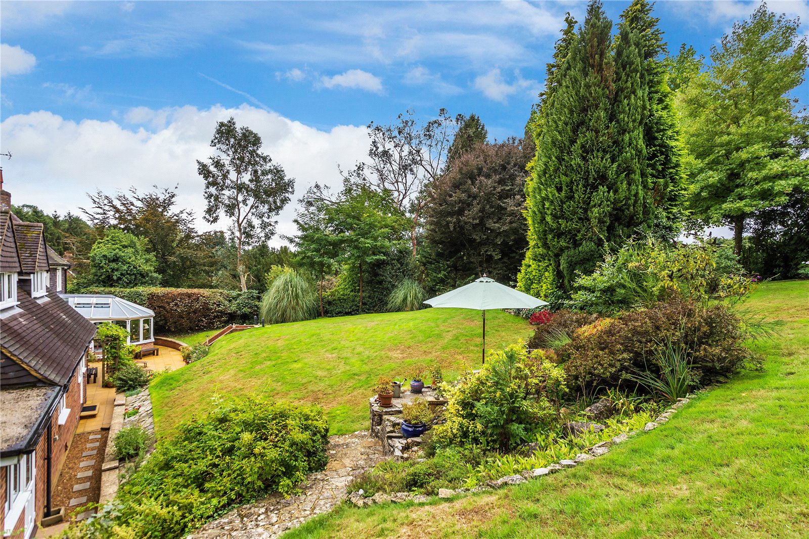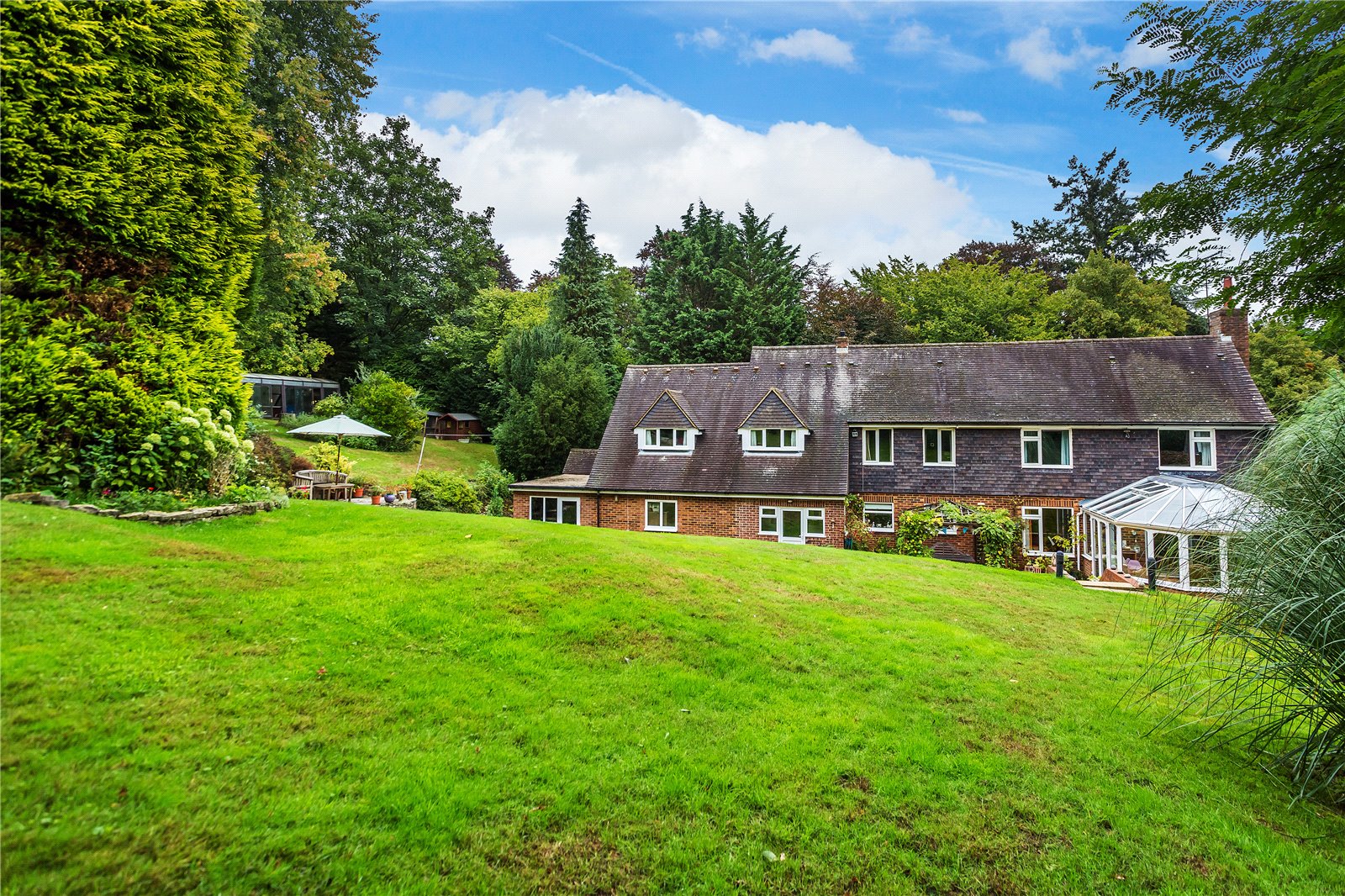 A range of other timber-built garden stores are also found in the garden, along with a vegetable garden, greenhouse, composting area and secondary patio. The main double garage is integral to the house, with a second single garage accessible from both the rear garden and the main driveway. There is a gated side access to the front of the house.