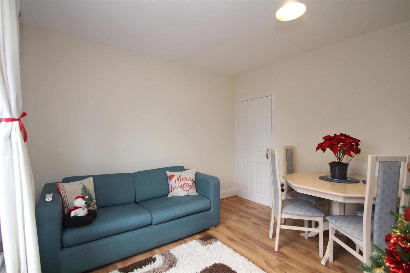 The entrance to the apartment is on the side of the property from which stairs lead up to the hall. To the front of the apartment is a sitting room with storage. The kitchen is fitted with white units, black worktops as well as being fitted with a fridge/freezer, washing machine, gas hob and an electric oven. There is a double bedroom with inbuilt storage and a modern bathroom with white units and a shower over the bath.