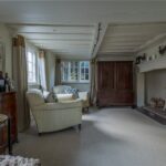 The charming sitting room has a wood-burning stove, positioned in a most attractive inglenook fireplace. An abundance of weathered and painted oak beams with dual-aspect windows flood this wonderful room with light.