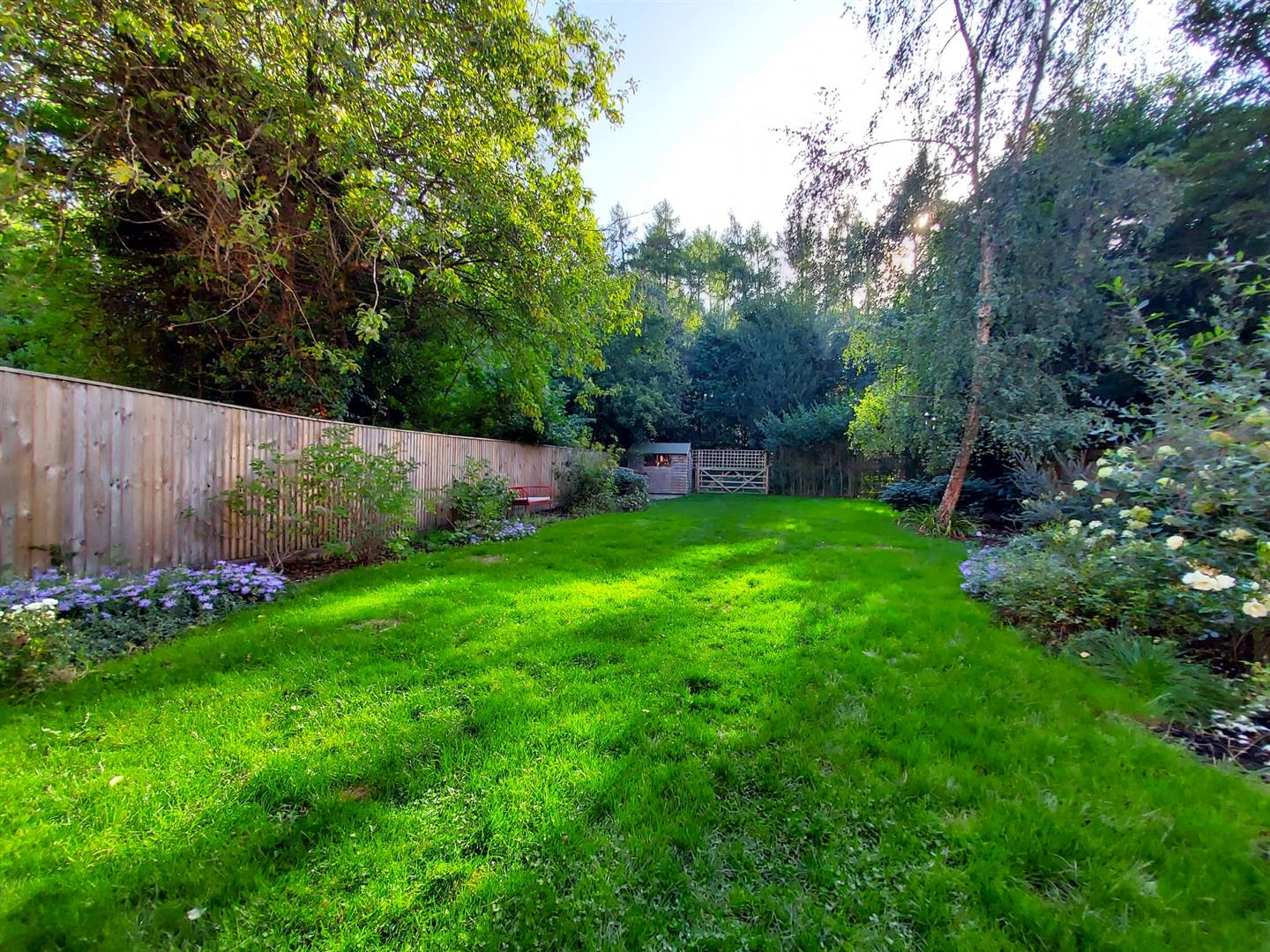 The property benefits from a private, enclosed rear garden with a patio space leading onto into the lawn with planted borders. There is a garden shed and a rear gate providing access for bins. To the front, there is private off-street parking available for two cars.
