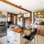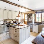 Of note are the beautiful landscaped grounds and gardens, comprising lawned areas, flagged stone terraces, box hedging, rose beds and herbaceous borders. The gardens are inspired by Gertrude Jeykll. A delightful courtyard perfect for evening entertaining looks across to a newly constructed vegetable garden. A tennis court and triple garage completes the picture of these unique grounds and gardens. Rarely do we see solar panels installed at these historic homes, and yet, Unstead Manor draws much of the energy needed to run the house and gardens from this 21st century method.
