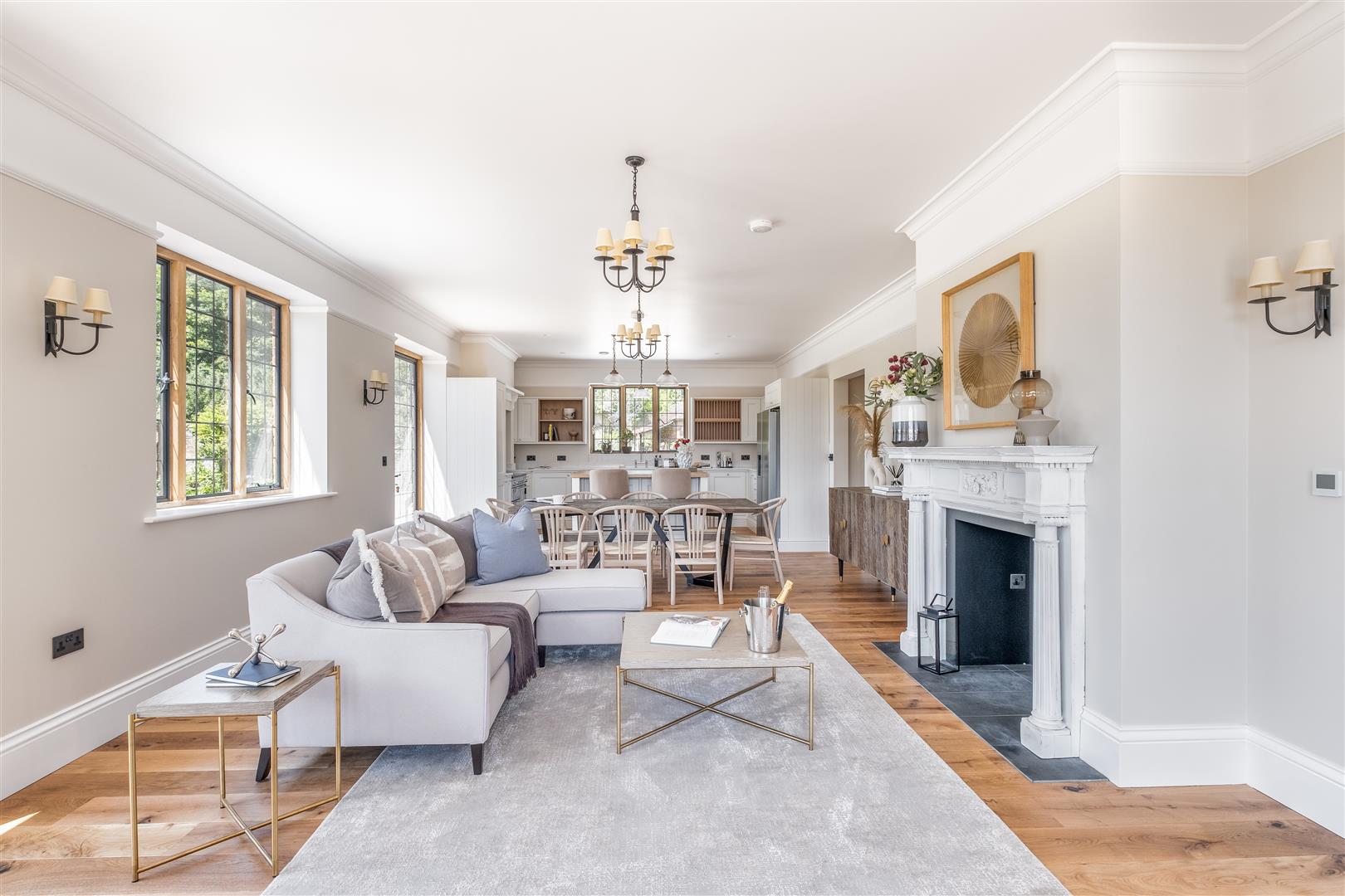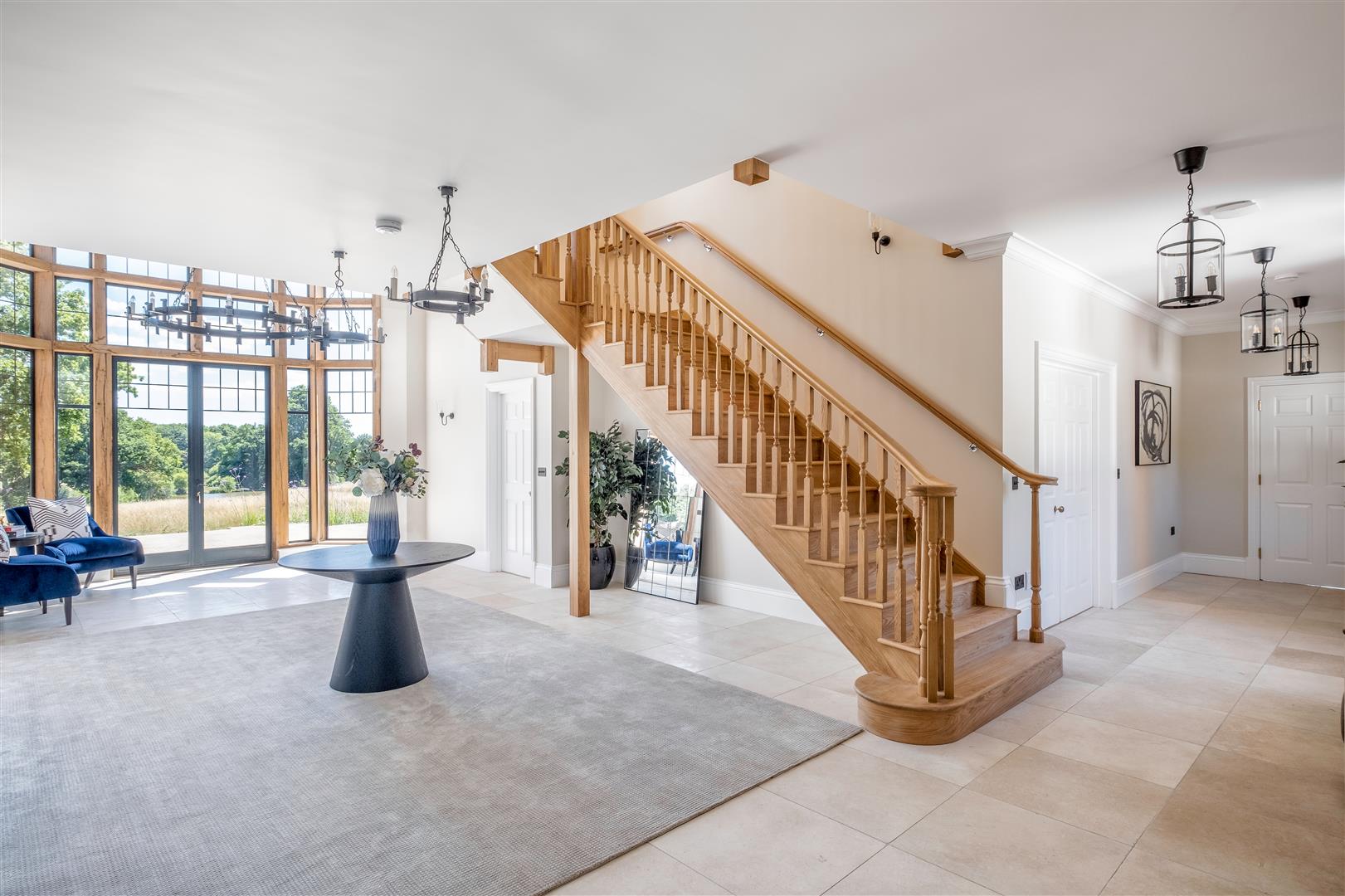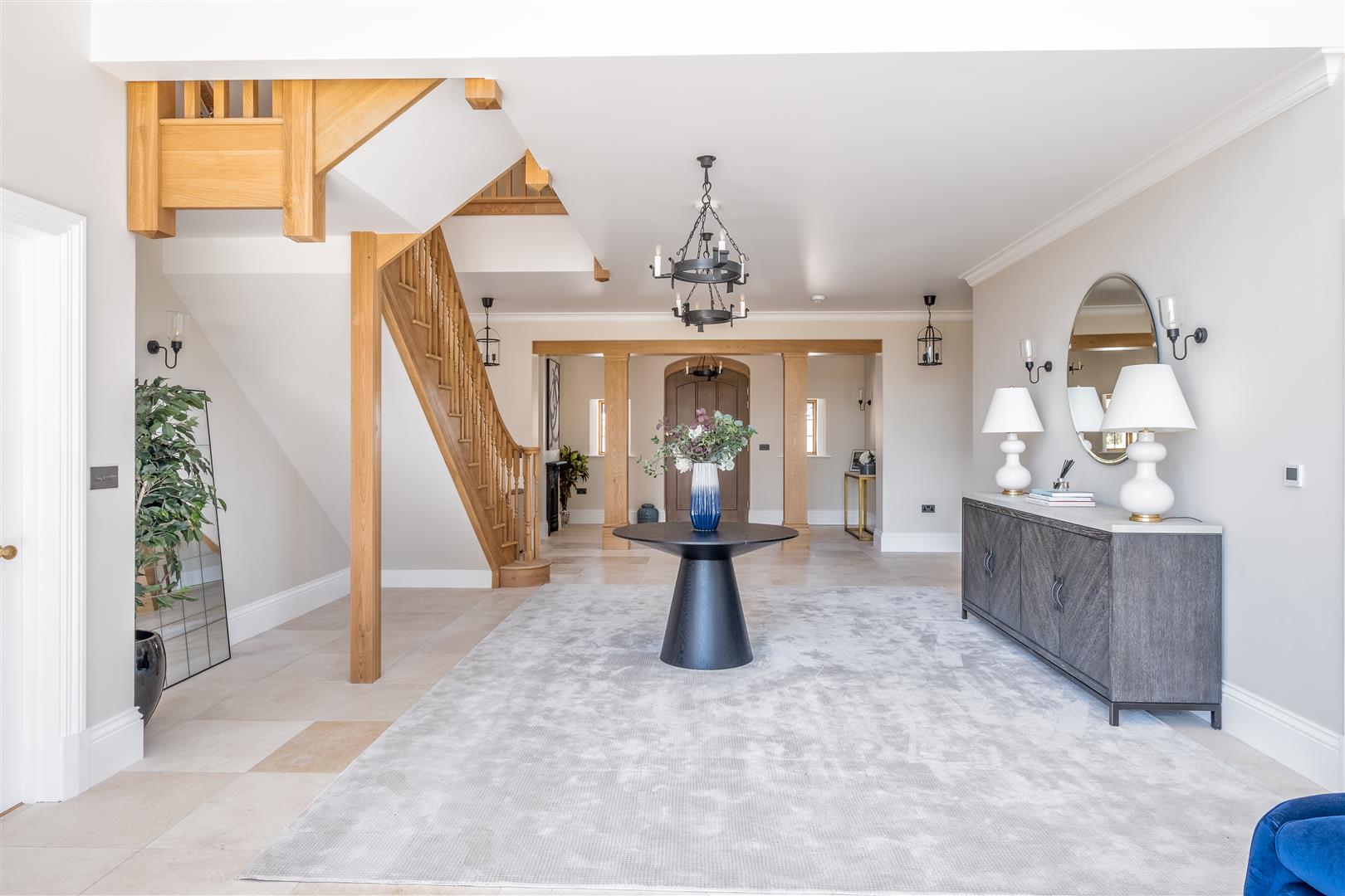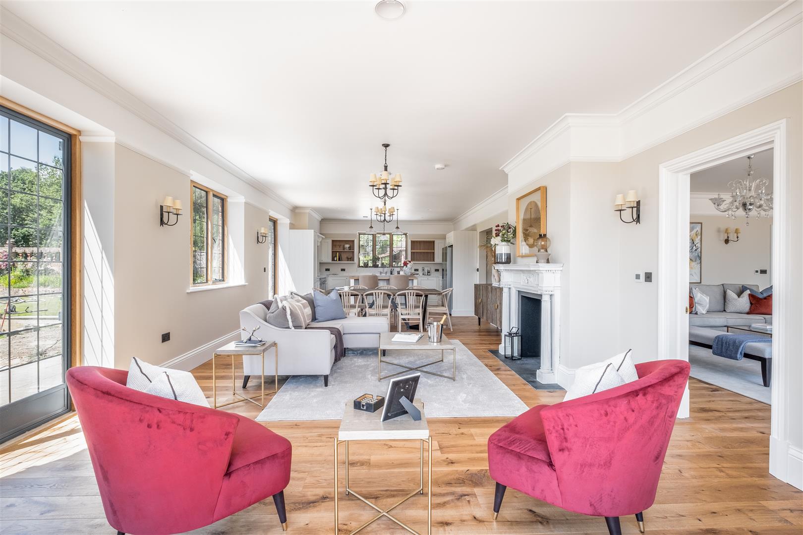 The front door opens into the grand reception hall, including fabulous double height window with southerly aspect floods light in. On the ground floor is a kitchen with appliances including a Range induction hob, American fridge freezer and dishwasher. There are four receptions at the rear of the house, all with a southerly aspect and doors leading onto the terracing. Also on the ground floor is a utility/boot room with access to the front drive, office , shower room and two w.c.s