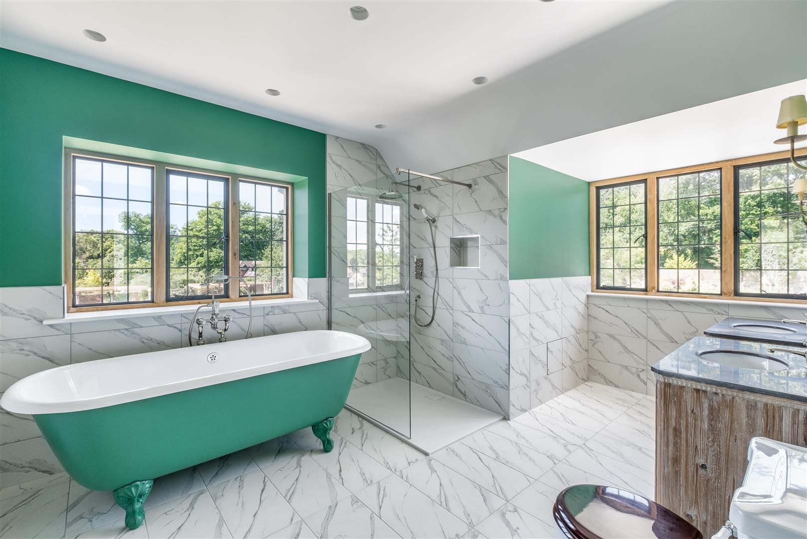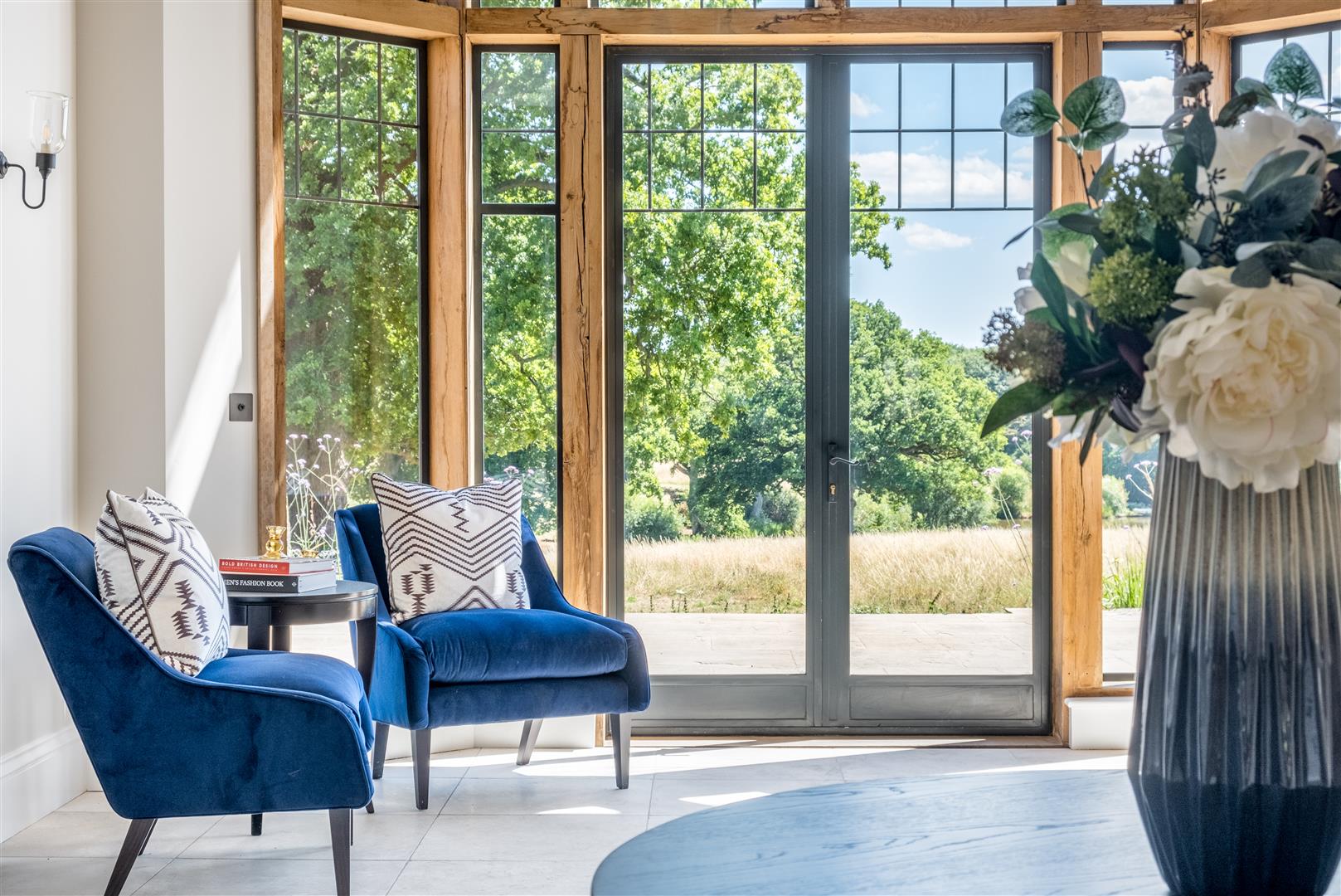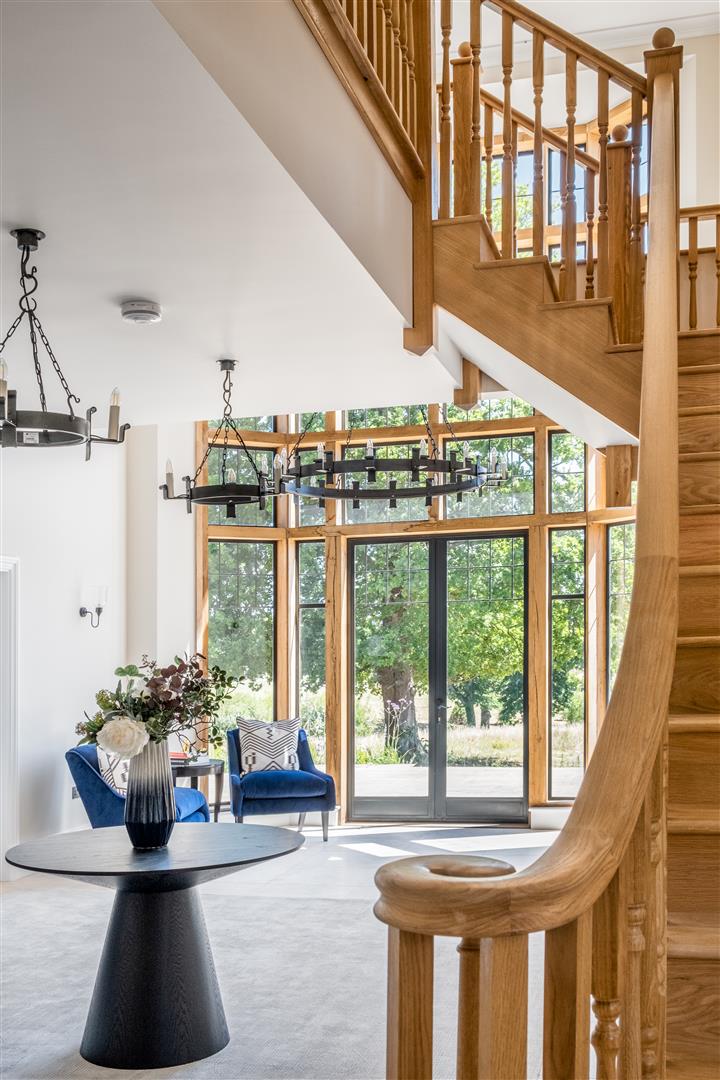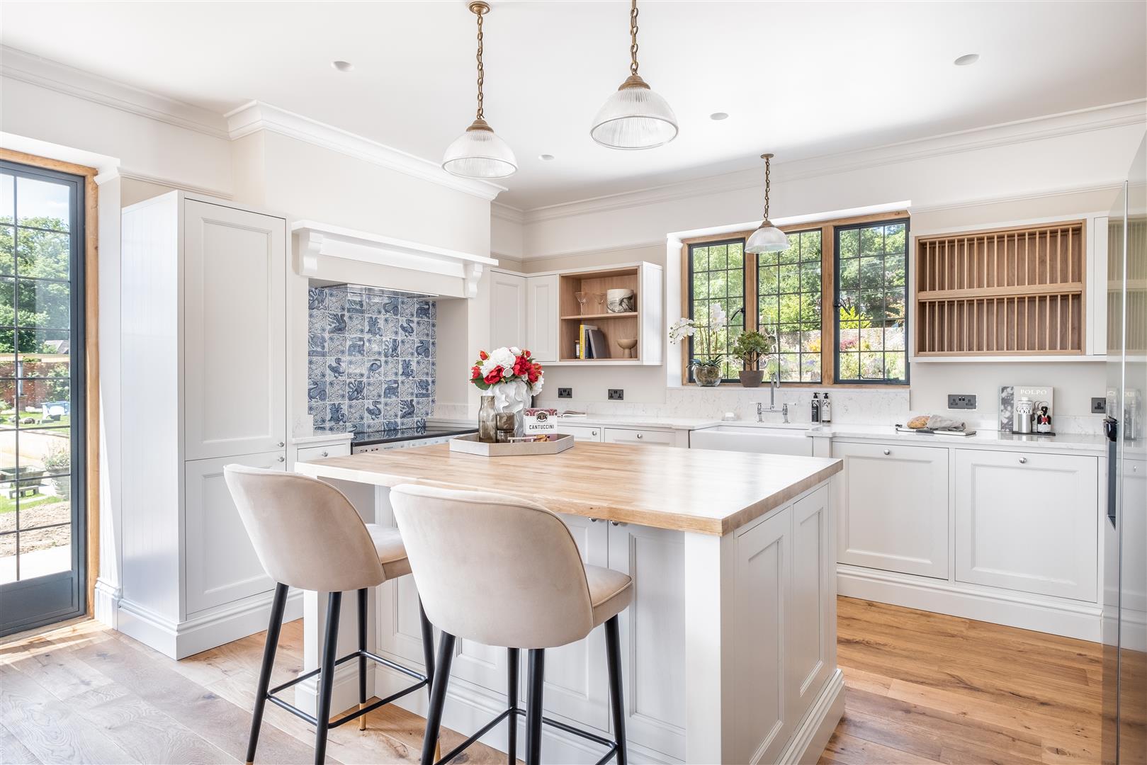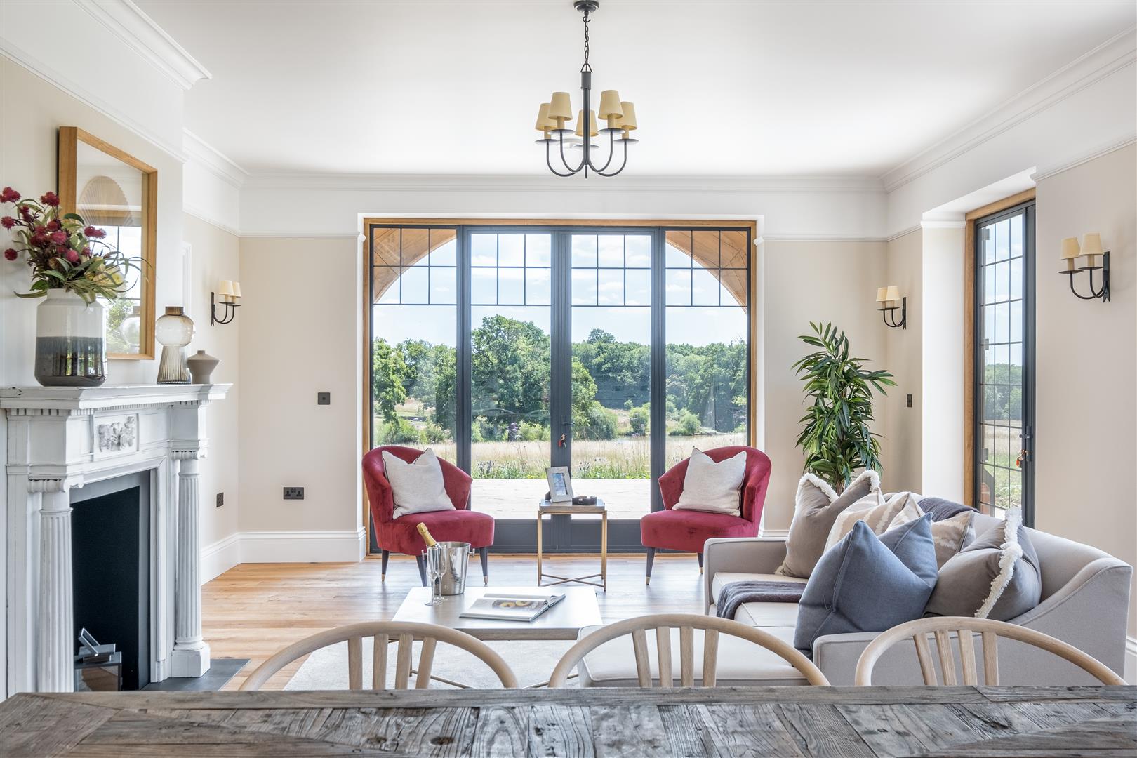 The front door opens into the grand reception hall, including fabulous double height window with southerly aspect floods light in. On the ground floor is a kitchen with appliances including a Range induction hob, American fridge freezer and dishwasher. There are four receptions at the rear of the house, all with a southerly aspect and doors leading onto the terracing. Also on the ground floor is a utility/boot room with access to the front drive, office , shower room and two w.c.s