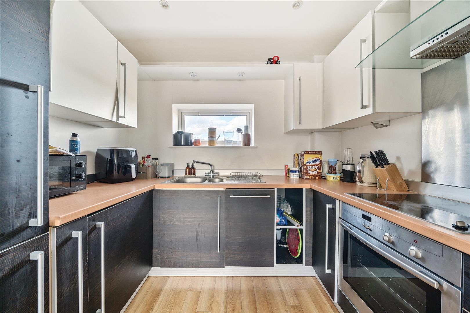 This top floor apartment is presented in a modern fashion throughout and includes a light, south facing, open plan living room and kitchen with hard flooring and integrated appliances including a hob, electric oven, dishwasher, fridge, freezer and washing machine. The bedroom is carpeted with a south facing aspect. There is a bathroom with a shower over the bath.