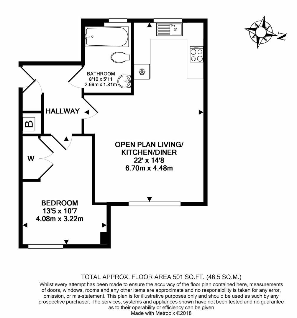 This top floor apartment is presented in a modern fashion throughout and includes a light, south facing, open plan living room and kitchen with hard flooring and integrated appliances including a hob, electric oven, dishwasher, fridge, freezer and washing machine. The bedroom is carpeted with a south facing aspect. There is a bathroom with a shower over the bath.