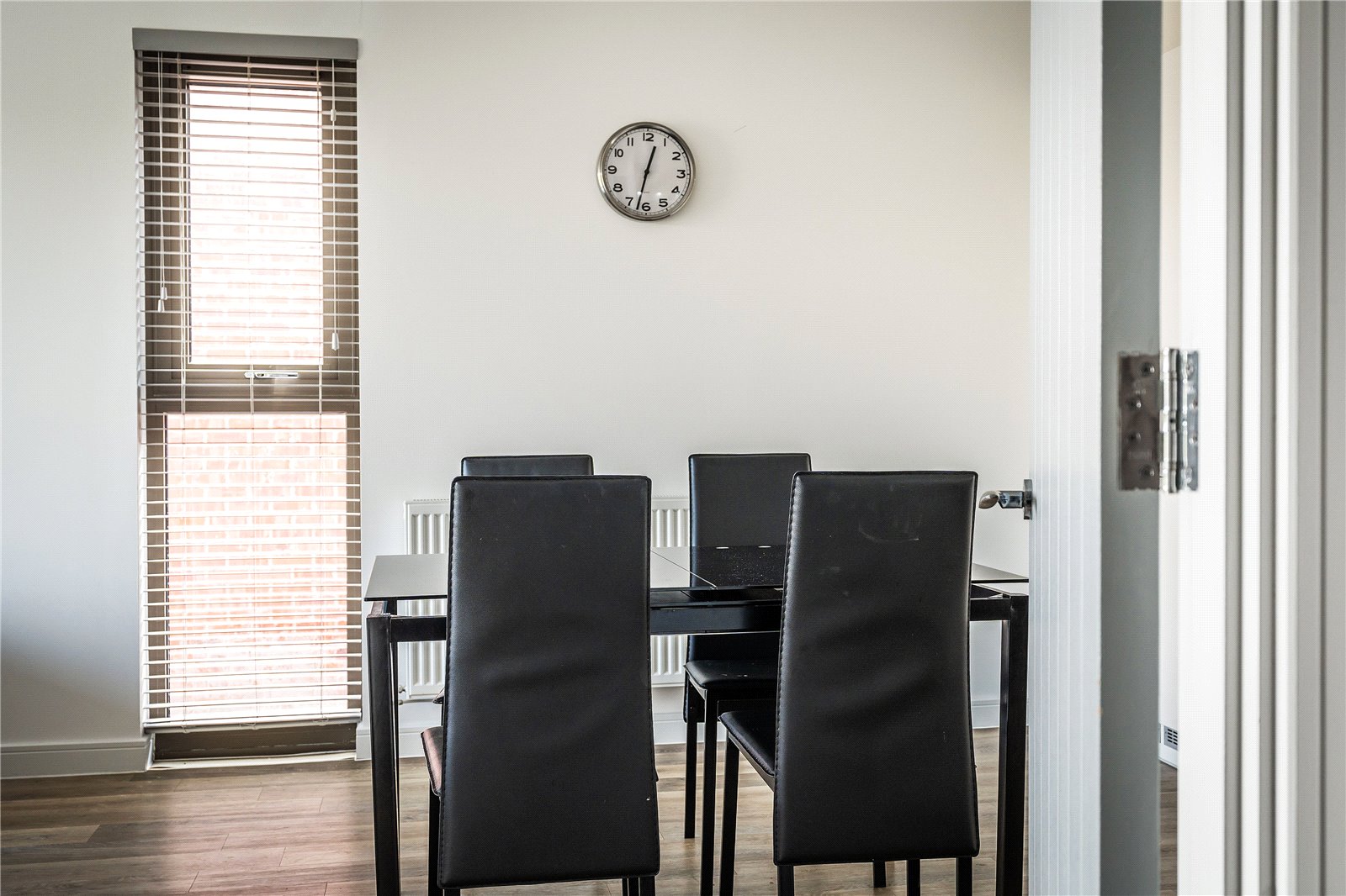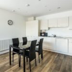 The apartment has a spacious and bright central hallway which leads through to the open plan living, dining and kitchen space. A wonderfully bright room with a large picture window and door to the generous private balcony. It has ample space for living room furniture plus a dining area.