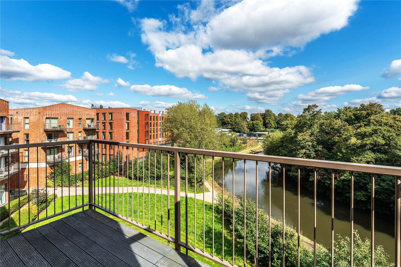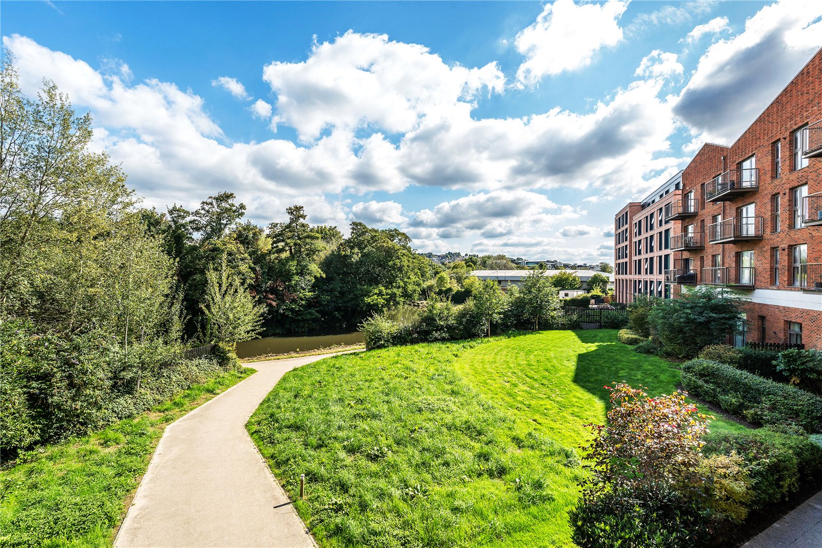 Outside are communal gardens leading to the river, a covered and private parking space is also included.