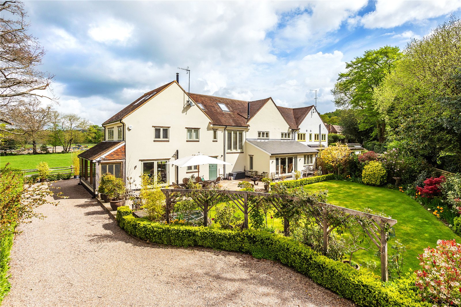 Tangley Field is a substantial family house that started life off as a modest semi-rural cottage in 1948. Following a significant refurbishment and clever enlargement program, designed and managed by the renowned architect Elspeth Beard in 2015, Tangley Field is now a significant family home of approximately 3,749 sq ft.