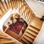Part of the redevelopment was the installation of an oak-framed principal staircase. Again, the use of a vaulted ceiling and large window flood the galleried landing with light, and offer some stunning views across the surrounding landscape.