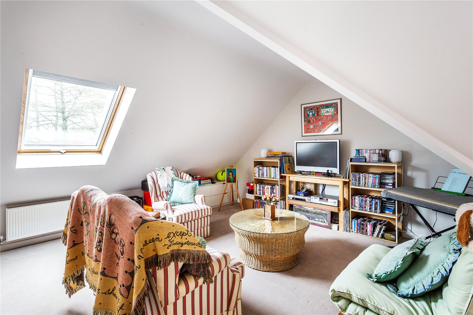 The second floor, accessed by another fine oak staircase, is given over to a superb bedroom with a separate living area and en suite bathroom. Given how this room was constructed, it also enjoys vaulted ceilings.